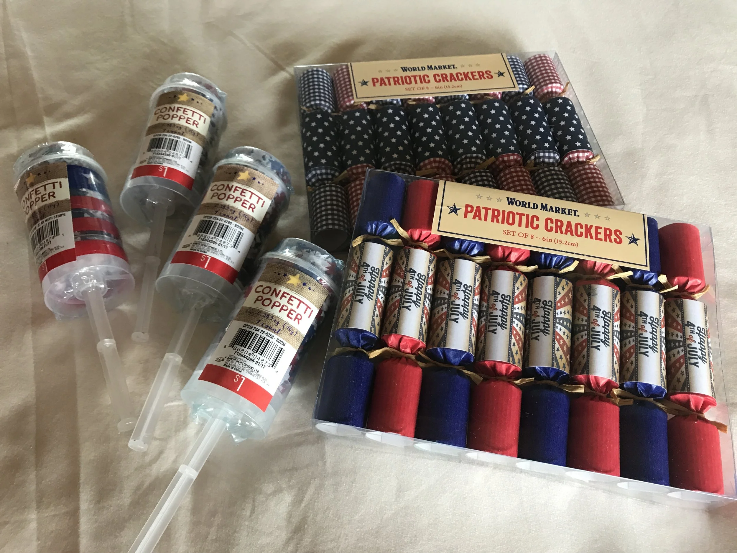 Confetti Poppers are from Target and Crackers are from Cost Plus World Market.