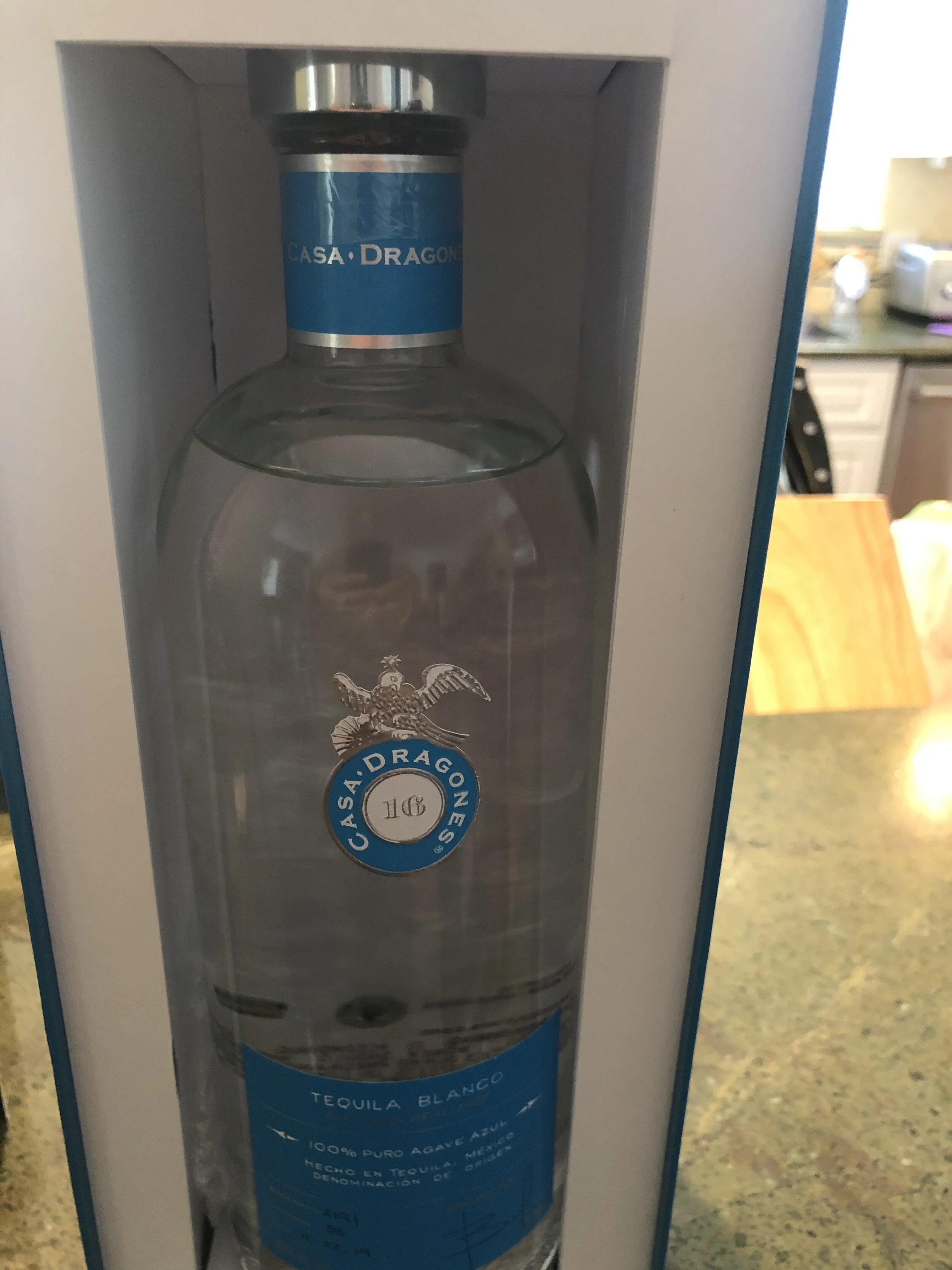 Although this is a different brand from last year, it is the second year in a row that we sent my brother-in-law a bottle of tequila for his birthday. It’s not like he is a huge fan of tequila but once I tasted Casa Dragones, I knew Frank would like this too. Look at the presentation of this bottle. Fancy.