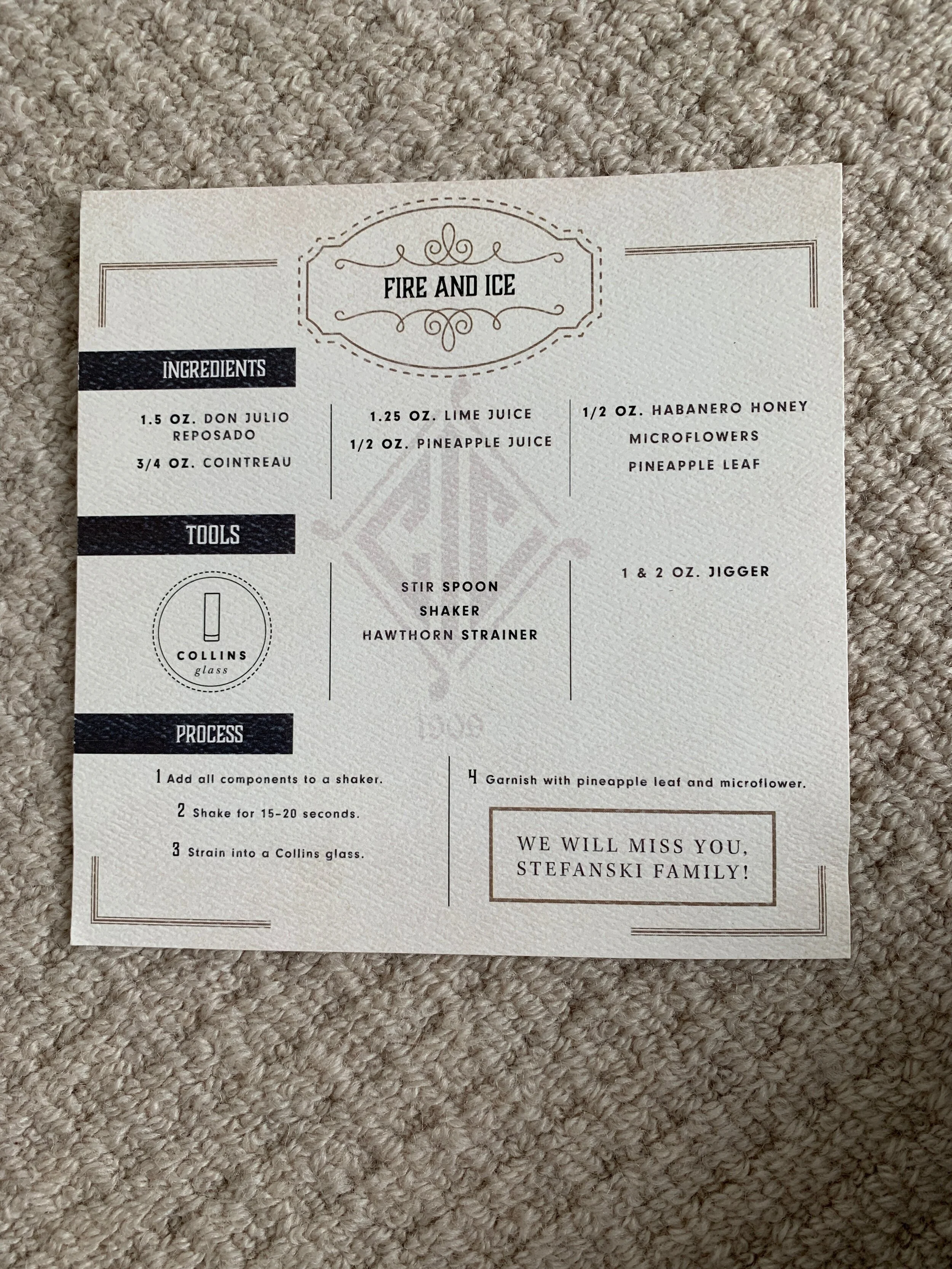 Now it’s my turn to give a thoughtful pinch or two for National Tequila Day. First, for all the tequila lovers out there I have another recipe for you. Our same friend that gave us the bottle of Casa Dragones Tequila, absolutely loves the cocktail below. So when her family was moving away, friends made sure to send her off with a copy of the recipe so that she can still enjoy her favorite tequila drink in Cleveland.