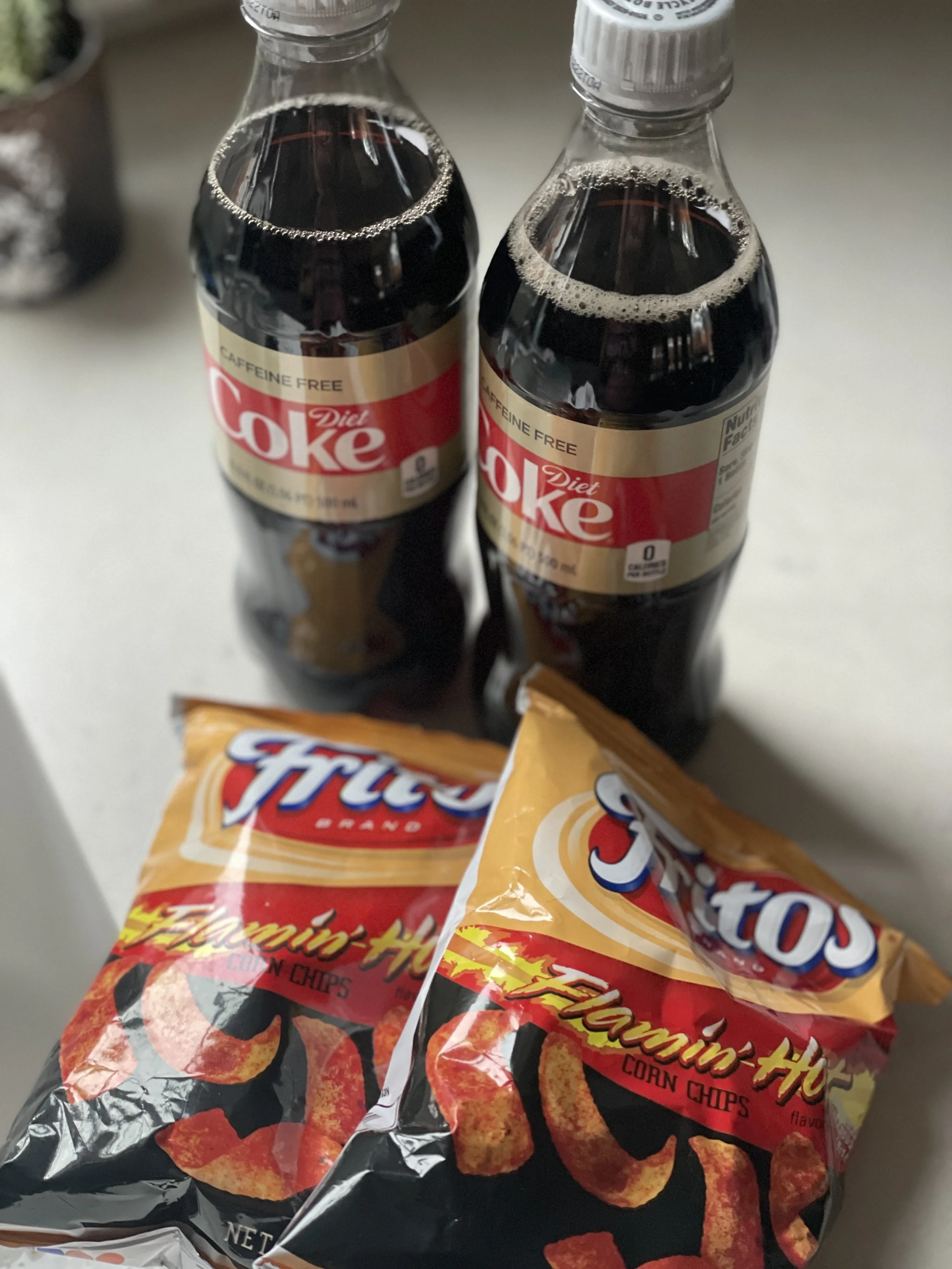 Road Trip! I brought these from home because lately, I have not found caffeine-free diet Coke and/or Chili-flavored Fritos in gas stations when we are on road trips. I think this new flavor has sort of bumped out the chili-flavor. This combo hit the spot on that drive from Denver to Avon/Beaver Creek.